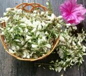 槐花广义是为豆科植物槐的干燥花蕾及花。中国各地区产,以黄土高原和华北平原为多。夏季花未开放时采收其花蕾,称为“槐米”;花开放时采收,称为“槐花”。采收后除去花序的枝、梗及杂质,及时干燥,生用、炒用或炒炭用。