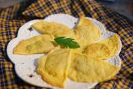 菜名:鸡蛋蛋饺食材: 蛋皮:鸡蛋 蛋皮:植物油 肉馅:猪肉 盐 耗油 细砂糖 料酒 芝麻油 水 葱花
