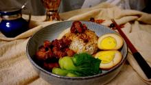 菜名:台湾卤肉饭食材: 五花肉 鸡蛋 紫皮洋葱中等个 葱姜蒜 香叶 八角 花雕酒 老抽 冰糖 盐 油 纯净水