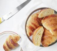 菜名:可颂食材: 高筋粉 低筋粉 细砂糖 盐 奶粉 水 黄油 干酵母 裹入黄油