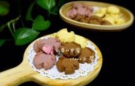 食材: 低筋面粉 玉米淀粉 黄 油 白 糖 奶 粉 熟 蛋 黄 盐 紫 薯 粉 可 可 粉