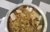 菜名:白菜炖豆腐食材: 白菜 姜丝 大蒜 葱 酱 食用油 盐 香醋