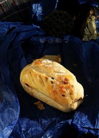 菜名:葡萄干软欧包食材: 高筋面粉 全麦面包粉 牛奶 黄油 红糖 核桃 葡萄干 酵母 盐