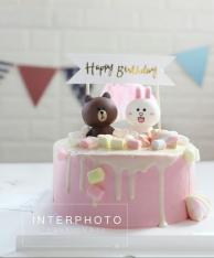 菜名:芝士淋面生日蛋糕食材: 低筋面粉 细砂糖 水 玉米淀粉 玉米油 蛋白 蛋黄 粉色色素 淡奶油 细砂糖 奶油奶酪 奶油 糖粉 卡通玩偶 棉花糖