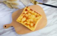 菜名:岩烧乳酪食材: 黄油 淡奶油 砂糖 芝士片 厚土司 杏仁片