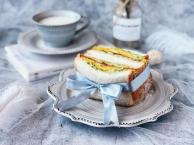 厚吐司 火腿片 叶菜 彩椒 番茄酱