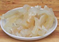菜名:青椒蹄筋食材: 猪蹄筋 草菇 青椒 食用油 盐 白糖 生粉猪蹄筋即连接关节的腱子,人工抽出后干制而成。它的前蹄与后蹄,后蹄的筋质量好,一端成圆形,另一端分开两条,也都是圆形。前蹄的筋质量差,筋短小,一端呈扁形,另一端分开两条,也呈扁形。富含胶质,质地柔软,在烹调中常用作筵席菜肴的原料。