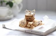 菜名:黑芝麻干果雪花酥食材: 小葫芦饼干 棉花糖 奶粉 黑芝麻粉 黄油 去皮熟花生米 蔓越梅干 黑加仑葡萄干 奶粉(撒粉)