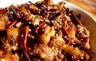 菜名:红烧鸡块茶树菇食材: 母鸡 茶树菇 葱姜蒜 料酒 盐 生抽 老抽 白砂糖 熟白芝麻