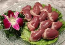 鸭心的营养丰富,有补心安神、镇静降压、理气舒肝之效,适用于心慌气短、出汗乏力、心烦失眠和低热盗汗等症状。以鸭心入菜,可用来卤水、油炸或爆炒,尤其做成麻辣鸡心后,不但味道鲜美,而且麻辣味浓,口感也十分鲜嫩。