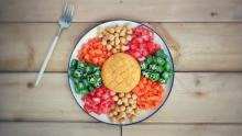 菜名:缤纷沙拉食材: 红薯 秋葵 西红柿 鹰嘴豆 红萝卜 沙拉酱别名桃尔豆、鸡豆、鸡心豆等,因其面形奇特,尖如鹰嘴,故称此名。鹰嘴豆的淀粉具有板栗香味。 鹰嘴豆粉加上奶粉制成豆乳粉,易于吸收消化,是婴儿和老年人的营养食品。鹰嘴豆还可以做成各种点心和油炸豆。