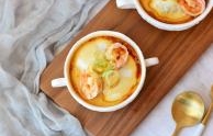 菜名:鲜虾窝蛋蒸肉泥食材: 肉馅 香菇 鸡蛋 青虾 盐 蚝油 海鲜酱油