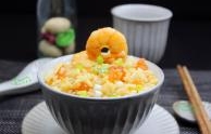 菜名:咸蛋黄虾仁炒饭食材: 米饭 咸蛋黄 青虾 橄榄油 生抽 生姜 胡椒粉 香葱