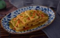 菜名:茴香鸡蛋小豆腐食材: 茴香 北豆腐 鸡蛋 枸杞 姜末 葱花 盐 白胡椒粉 鸡精