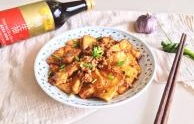 菜名:锅塌豆腐食材: 北豆腐 肉末 鸡蛋 玉米淀粉 生抽 老抽 蚝油 大蒜 盐 高汤(或清水) 食用油 香葱