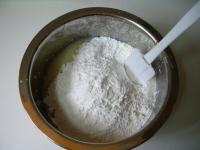 菜名:奶黄冰皮月饼食材: 小麦淀粉 糯米粉 粘米粉 牛奶 糖粉 玉米油 奶黄馅