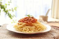 菜名:番茄肉酱意面食材: 意面 瘦肉 番茄 洋葱 黑胡椒 芝士粉