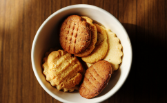 菜名:雪花酥食材: 饼干 棉花糖 奶粉 熟花生 水果干 黄油 表面奶粉