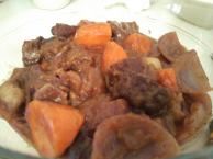 菜名:土豆胡萝卜焖牛腩食材: 牛腩 胡萝卜 土豆 盐 葱段