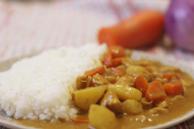 菜名:咖喱土豆块食材: 土豆 胡萝卜 葱 盐 咖喱块 食用油