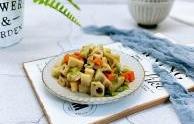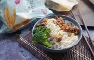 菜名:猪肉藕丁拌面食材: 金龙鱼高筋粉 金龙鱼低筋粉 清水 猪肉 莲藕 生抽 料酒 蒜头 白糖 玉米油 豆芽 西兰花