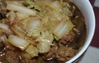 菜名:白菜炖干豆腐食材: 白菜 干豆腐 猪肉 大葱 大蒜 姜