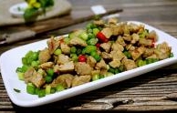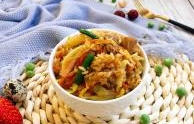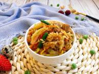 菜名:鹅蛋虾仁蒜薹火腿炒饭食材: 虾仁 鹅蛋 蒜薹 小葱 火腿肠 米饭 花生油 盐 鸡精 花椒粉