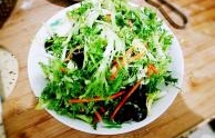 菜名:蔬菜沙拉食材: 生菜 紫甘蓝 圣女果 樱桃萝卜 黄瓜 苦菊 水煮蛋 柠檬 冠利千岛沙拉酱 橄榄油