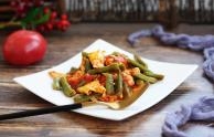 番茄 四季豆 鸡蛋 油 盐 鸡精 葱 蒜 水淀粉 花椒油 清水