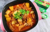 菜名:川香羊排烧萝卜食材: 羊排 白萝卜 京葱 八角,桂皮,香叶 小米椒,花椒 糖,盐 郫县豆瓣酱 料酒 浓汤宝猪骨浓汤 香菜