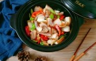 菜名:双椒炒猪头肉食材: 卤猪头肉 青椒 红椒 盐