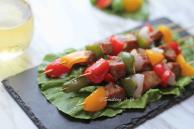 菜名:巴西风情烤肉串食材: 猪肉 洋葱 青椒 红椒 黄椒 生抽 盐 黑胡椒碎 料酒 大蒜 生姜