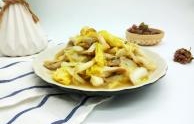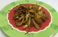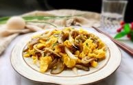 菜名:平菇肉丁打卤面食材: 鲜平菇 里脊肉 豆瓣酱 蚝油 生抽 料酒 姜末 洋葱 刀削面 香菜