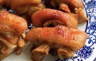 菜名:红烧猪蹄食材: 猪蹄 葱 姜 蒜 花椒 大料 生抽 老抽 耗油 香醋 料酒 白砂糖 无