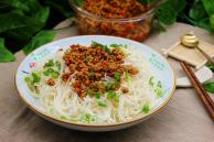 菜名:香辣肉末酱拌面食材: 面条 猪瘦肉 大蒜 生姜 香葱 油 盐 芝麻油 花生油 辣椒