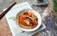 菜名:泡椒大蒜烧肚条食材: 泡椒 泡姜 猪肚 土豆 大蒜 花椒 小葱 豆瓣酱 生抽 料酒 老干妈油辣椒
