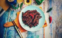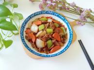 菜名:彩蔬咖喱牛肉饭食材: 熟牛肉 咖喱块 米饭 胡萝卜 甜椒 土豆 盐 冰糖 生抽 老抽 熟黑芝麻