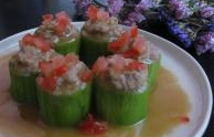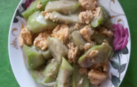 菜名:丝瓜酿肉丸食材: 丝瓜 肉馅 生姜 大蒜 水淀粉 蚝油 生抽 盐 鸡精 胡椒粉 食用油