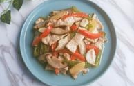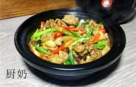 菜名:干锅香菇黄焖鸡食材: 鸡翅 泡发香菇 大蒜 葱花 油 盐 青红辣椒 老姜 八角 干灯笼椒 老抽 生抽 料酒 耗油