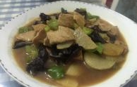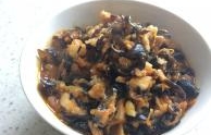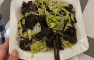 菜名:黑木耳炒鱼丸食材: 蒜苗 黑木耳 炸鱼丸 白鱼丸 橄榄油 盐 料酒