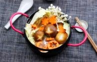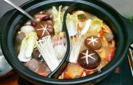 菜名:麻辣海鲜鸳鸯火锅食材: 梭子蟹 海虾 花蛤 金针菇 茼蒿 大白菜 黄豆芽 墨鱼风味丸子 鱼味豆腐 鱼味卷 亲亲肠 牛肉丸 龙虾排 包心虾丸 蟹棒 红蟹鱼 葱 姜 油豆腐 红枣 枸杞 盐 味精 花生油 水煮鱼调料