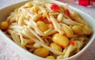 菜名:腊八豆拌金针菇食材: 金针菇 自制腊八豆 芝麻油 生抽