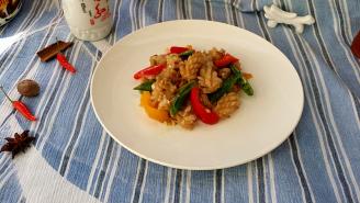 创新菜两种食材的碰撞鲜香微微的藤椒口味下饭下酒之美味佳肴。