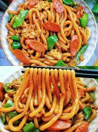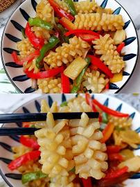 简单快手的双椒炒鱿鱼花,好吃又下饭