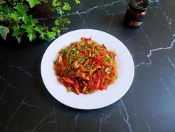 婆婆家自制的红薯粉丝,加了海鲜酱炒制,不但可口,味道还特别的