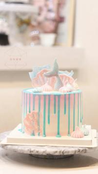 粉蓝色系鱼尾6寸加高淋面奶油蛋糕