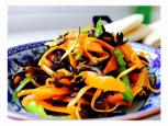 京酱肉丝是北京的传统菜,酱香味配上豆皮特有的味道,很好吃。