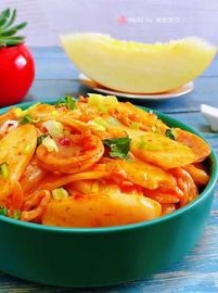 辣白菜香肠炒年糕