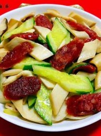 腊肠黄瓜炒杏鲍菇的制作方法