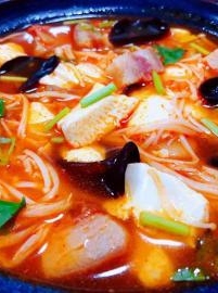 辣白菜金针菇猪头肉豆腐汤的制作方法